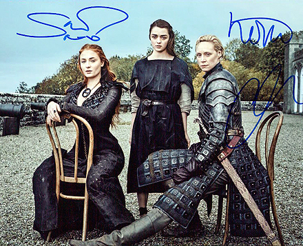 Amazing cast trio signed by - Maisie Willaims, Gwendoline Christie & Sophie Turner (Style B.